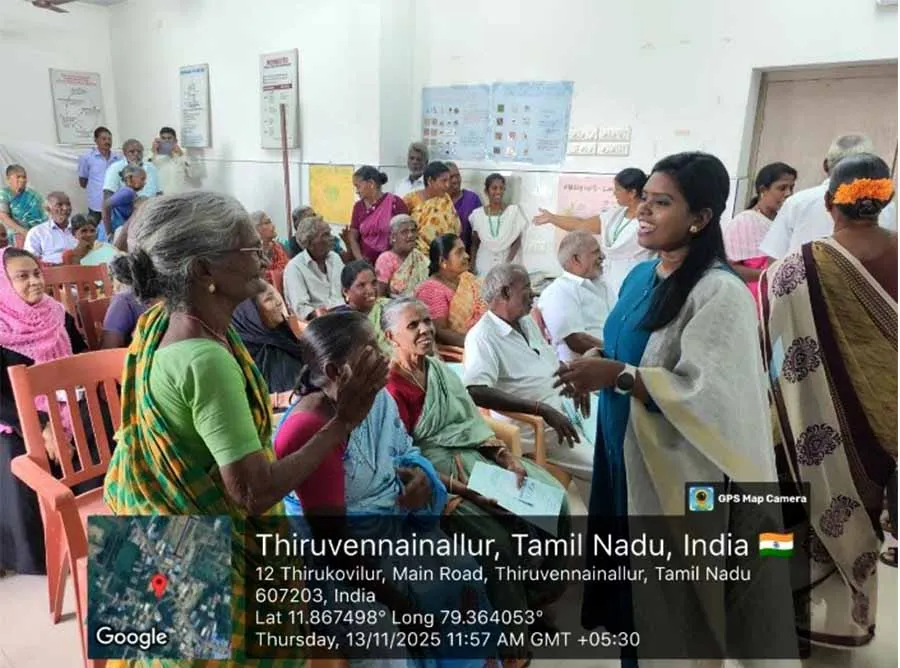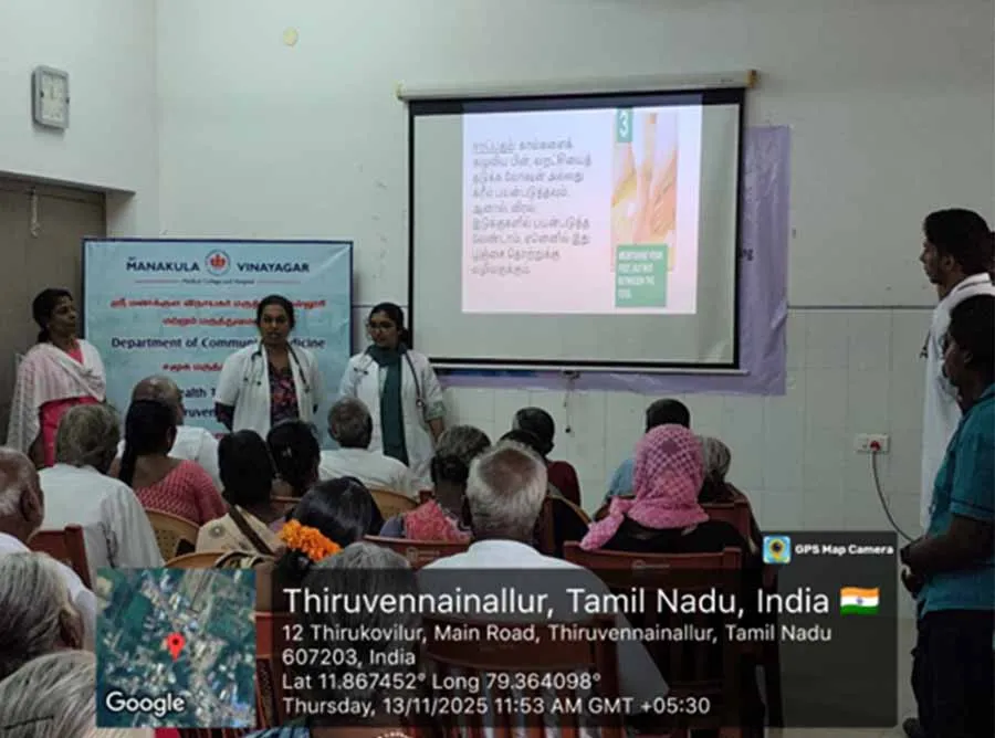 Sithalingamadam village was selected which is located one and half hours from our SMVMCH institution. Permission was obtained from village panchayath leader for this programme. To begin with initial mapping was done by the Medical social workers from our department, active key people in the village helped them through this process and house list along with street name and head of the family was drafted and map was organised. For each student 5 families were allotted. The microplanning was done. First visit was planned for 1 week from (30/10/2023 – 11/4/2023). The schedule and plan for each day was developed by the senior faculties from department of community medicine.