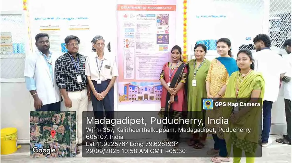 The Department of Microbiology, Sri Manakula Vinayagar Medical College & Hospital, Puducherry conducted a awareness program on prevention of respiratory allergic diseases on 08.07.2025 as a part of World Allergy Day Celebration 2025. Hand bills in regional language & English were distributed to the patients attending various O.P.D and also explained about the disease and their prevention by the staff of the department. Display of the preventive measures in the sign board was also arranged. A Lecture was also arranged for the students of Allied health sciences. A podcast in both English & Tamil by Dr. Thalalini was also broadcast on the day to create awareness among the community.