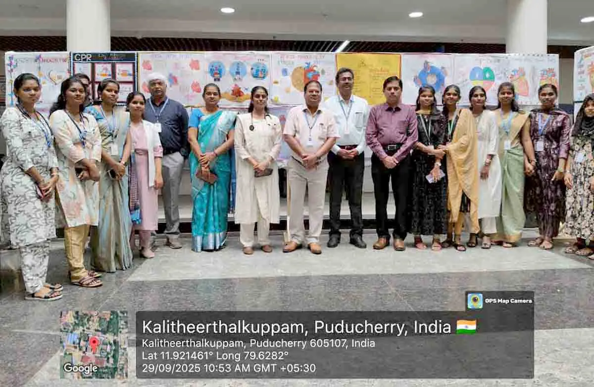 The main theme was “Early Detection Saves Lives”. The event was flagged off by Dr. Kagne, Director, SMVMCH. The gathering included our Medical Superintendent Dr. M. Pragash, Dr. Ashida.T.S Professor & HOD of Cardiology & Dr. S.Girija, Professor & HOD of General Medicine alongside enthusiastic faculty, postgraduate students, cardiology staff and AHS –B.Sc. CLT students. The walkathon started from college entrance and proceeded via Thirukkanur road, Kalitheerthalkuppam road, Thiruvalluvar Street of Sugumar Nagar and ended in college main gate. College security & local police provided traffic control & route security. Participants carried placards displaying information on cardio vascular risk factors, importance of healthy diet & physical activity & early screening for cardio vascular diseases. The event concluded back at the SMVMCH campus at 11:30 AM, leaving an inspiring message about public awareness and community participation in heart disease prevention.