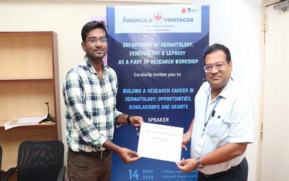The postgraduates who attended the event were awarded with a participation certificate and TNMC credit hours. The vote of thanks was presented by Dr. Karthikeyan. K, Professor and Head, Department of Dermatology. SMVMCH.