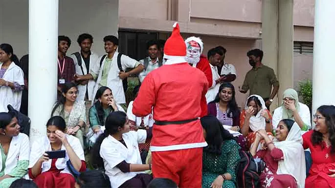 The Christmas – IQAC Celebration at SMVMCH on 24 December 2025 was a value-oriented cultural event coordinated by the IQAC and Mulya Pravah Committee in the SMVMCH Courtyard, College Block. Through carols, cultural performances, symbolic rituals and interactive activities, the programme brought together students, faculty and staff to share the message of peace, joy and human values, and served as a platform for student expression and community bonding within the campus