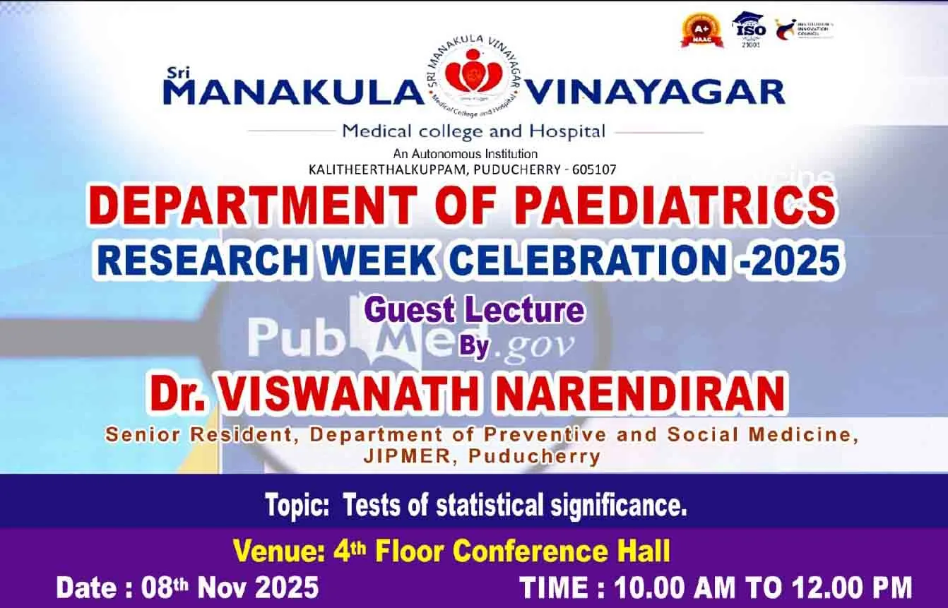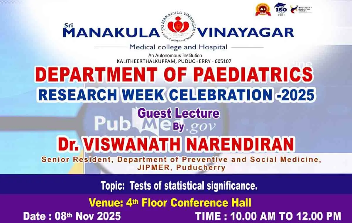 08th November 2025 @ 10:00 – 1:00 P.M Test for Statistical Significance. Organized By: Dept of Paediatrics
