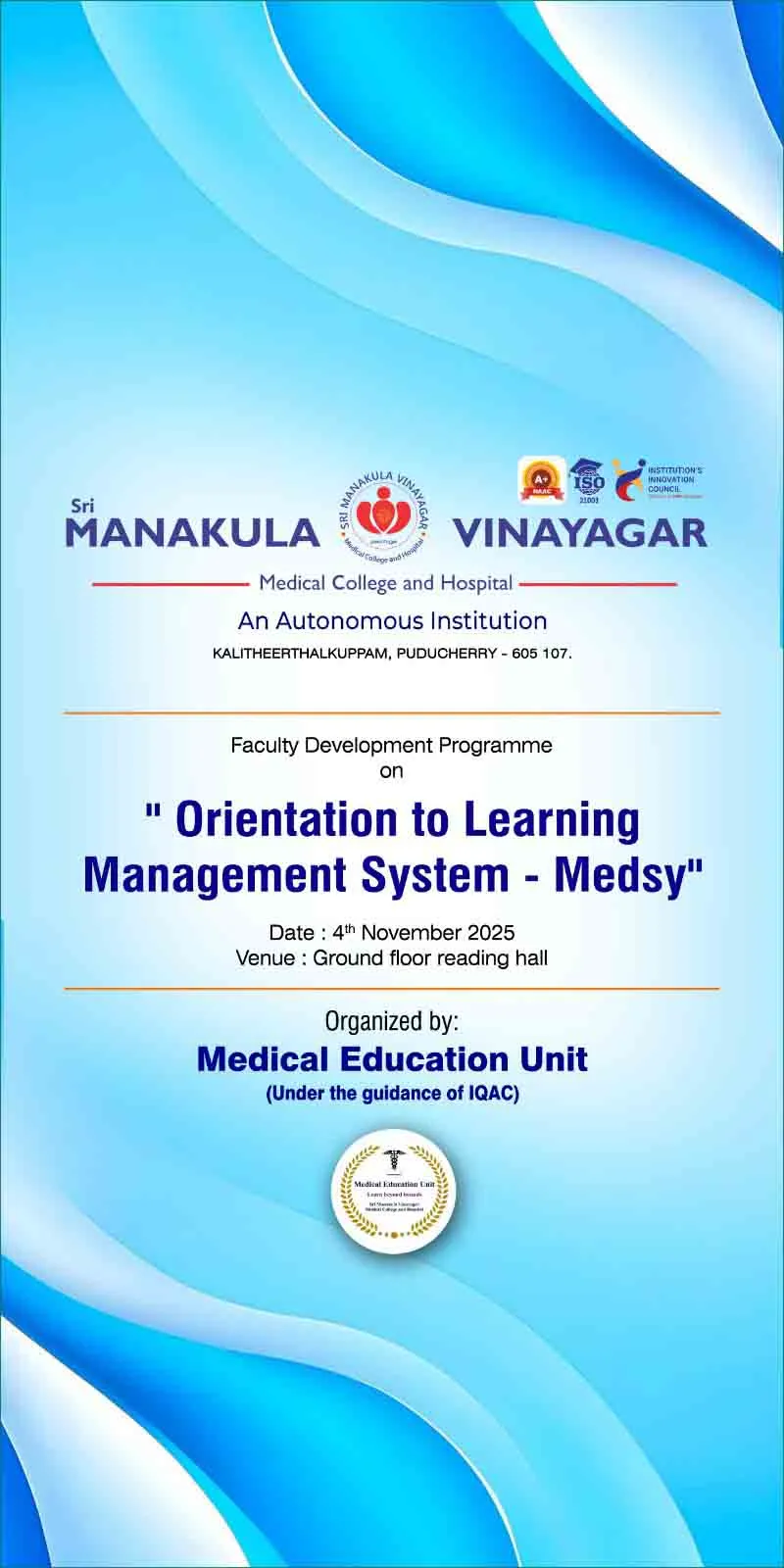 04th November 2025 @ 11-12:30 PM Orientation to Learning Management System – MEDSY. Organized By: Dept of Medical Education unit (MEU)