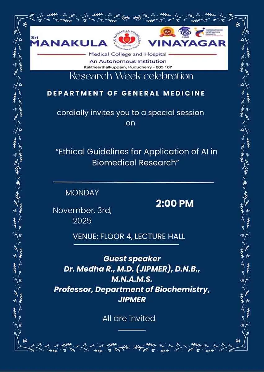 05th November 2025 Ethical Guidelines for applications of AI in Biomedical Research. Organized By: Dept of General Medicine