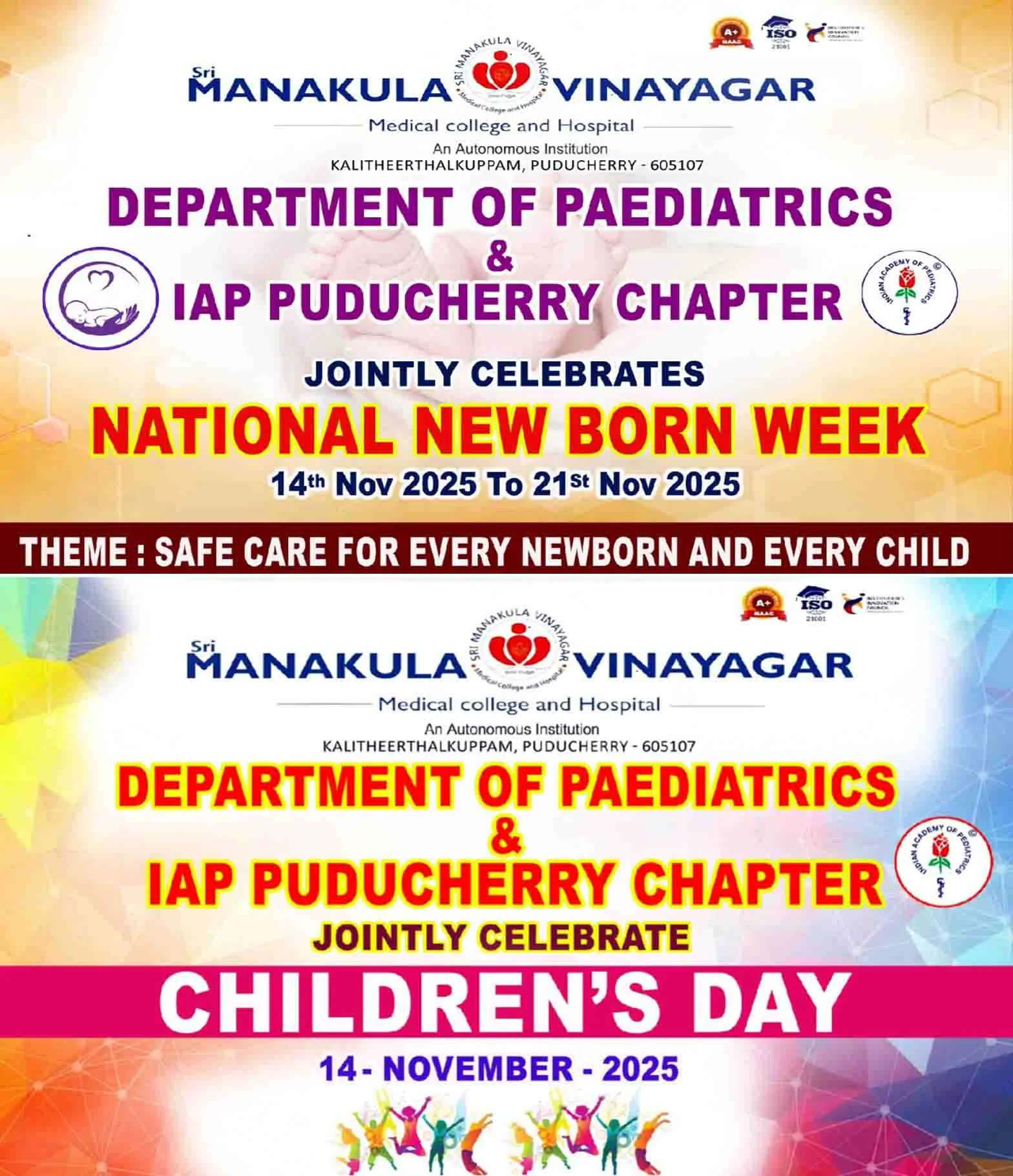 14th to 21st November 2025 @ 9:30 -2:00 P.M National Newborn week – 2025. Organized By: Dept of Paediatrics