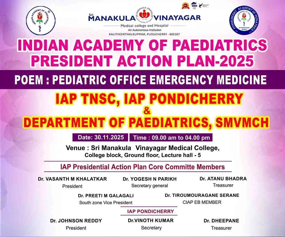 30th November 2025 @ 9:00 A.M – 3:30 P.M Peadiatric office Emergency Module. Organized By: Dept of Paediatrics